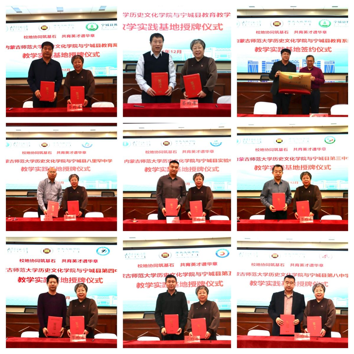 为深化校地协同育人,强化师范生实践能力培养,12月23日下午,我校历史文化学院党委书记李艳洁、副院长白林及于永教授一行赴宁城县,与宁城县教育局共同举行教育实习基地签约挂牌仪式暨“卓越师范生共育”座谈会。宁城县教育局局长尹文富、副局长母翔鹏、教发中心主任、七所初高中学校负责人及部分系友出席。